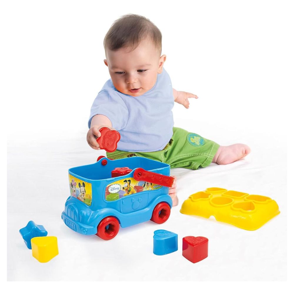 El Autobús Formas Mickey de Clementoni es un juguete educativo diseñado para estimular el aprendizaje y la diversión de los más pequeños. Fabricado en resistente plástico, este simpático autobús contenedor ayuda a los niños a reconocer diferentes formas y colores mientras desarrollan su coordinación ojo-mano.