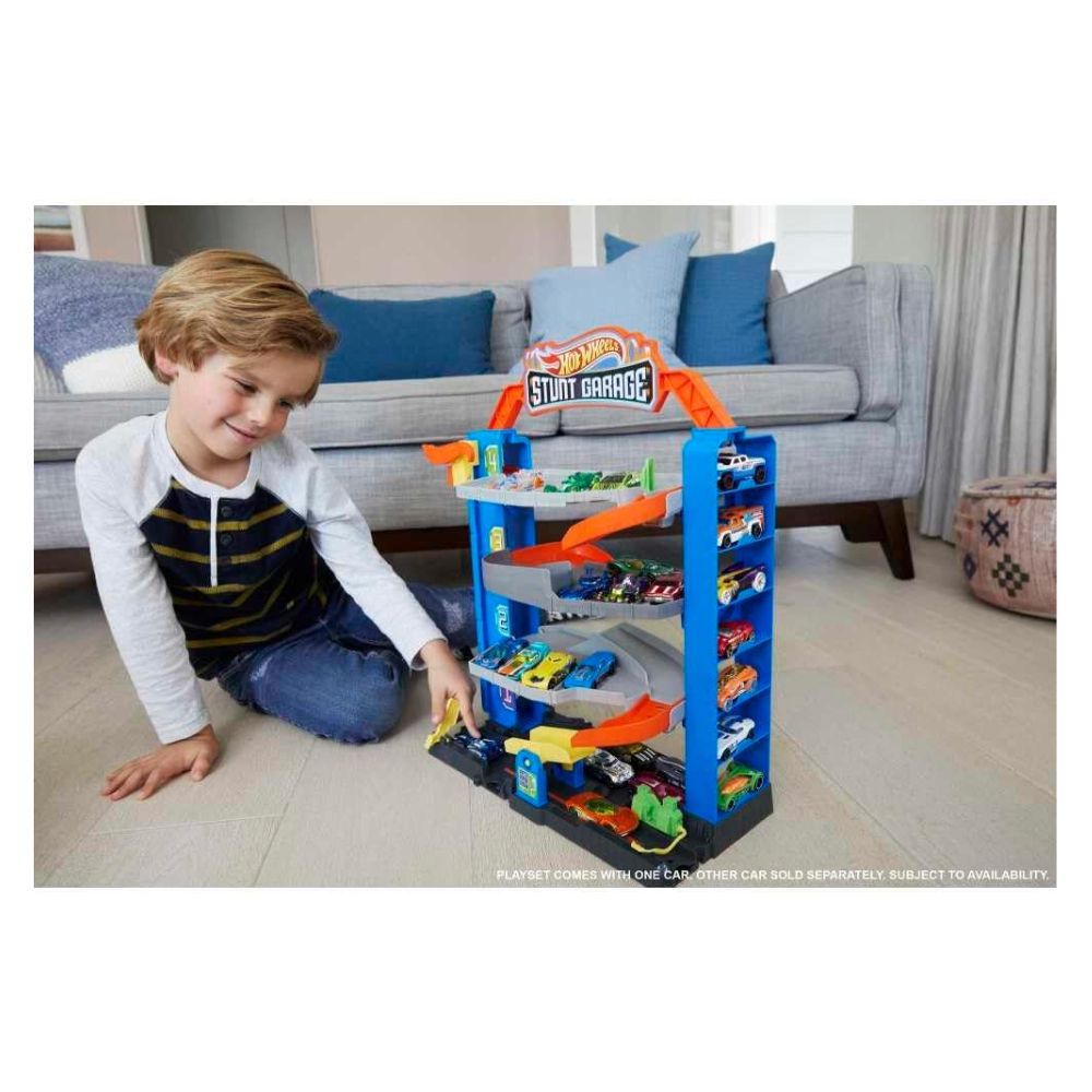 Un garaje completo, resistente y lleno de funciones para que los niños disfruten de las mejores aventuras automovilísticas con sus coches Hot Wheels.