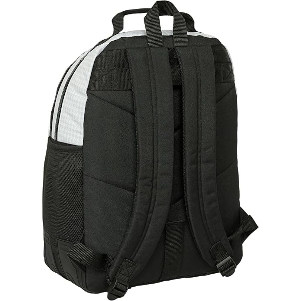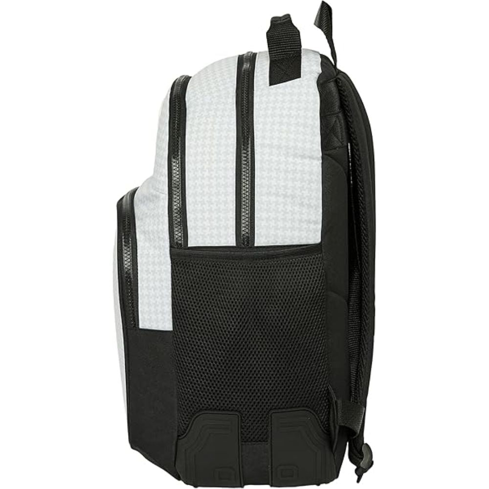 La Mochila Real Madrid Doble Cantoneras Escolar 24/25 es el accesorio ideal para los aficionados que desean llevar los colores de su equipo con orgullo mientras disfrutan de una mochila práctica, resistente y funcional. Se trata de un producto oficial del Real Madrid, con diseño exclusivo de la temporada 24/25 y respaldado por 2 años de garantía.
