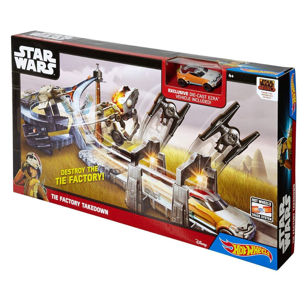 El set Ataque a la Fábrica de Cazas TIE Takedown Star Wars Hot Wheels transporta a los más pequeños al universo de Star Wars Rebels con una pista llena de acción y emoción. Inspirado en las épicas batallas contra el Imperio, este conjunto permite recrear misiones trepidantes mientras se intenta sabotear la fábrica de cazas TIE.