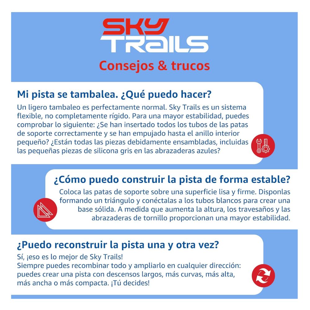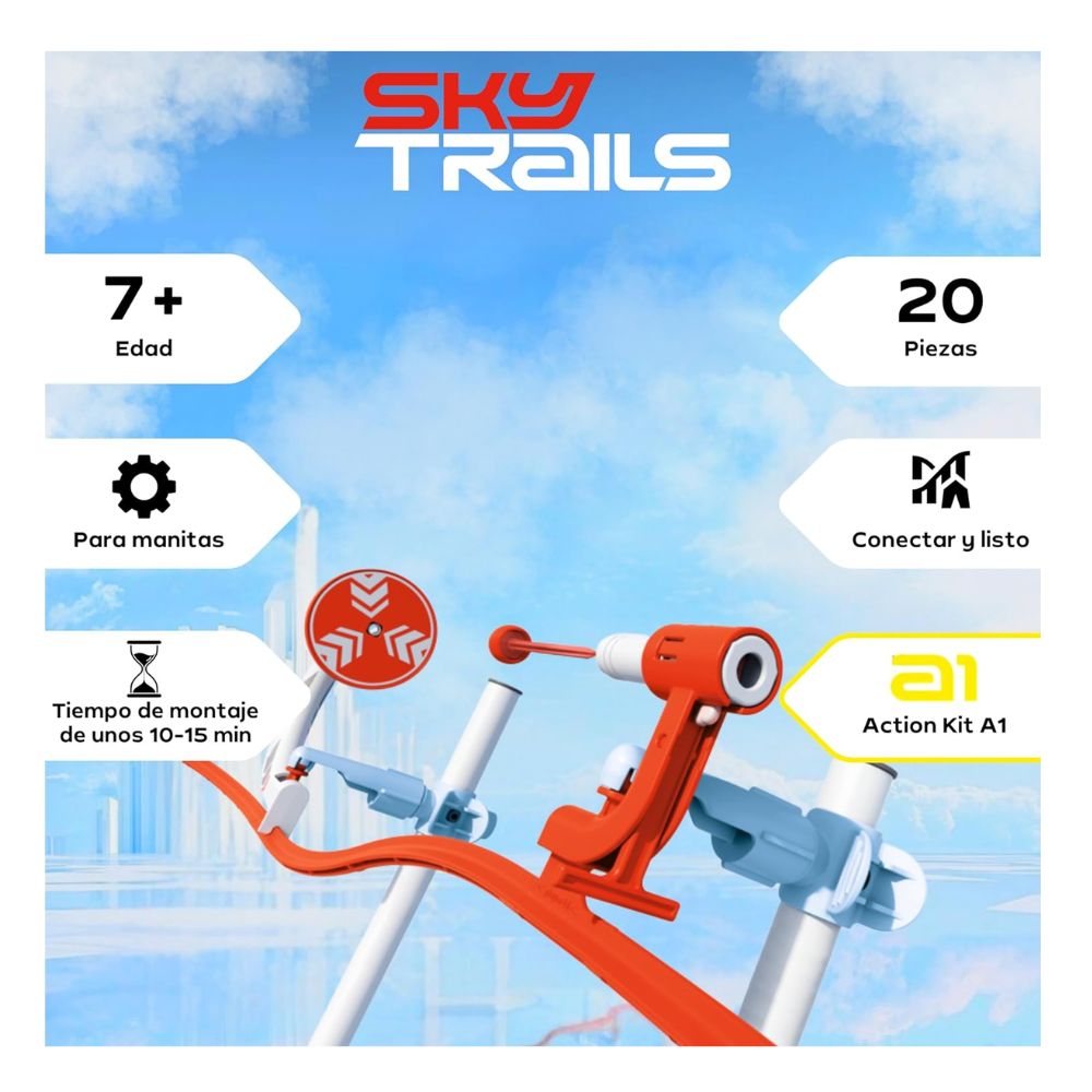 Se integra fácilmente con el Starter Kit Sky Trails (71969) y otras ampliaciones de la serie, permitiendo diseñar pistas cada vez más completas, dinámicas y desafiantes.